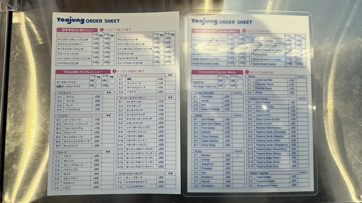 The menu is also available in Japanese, making it easy for first-time customers.