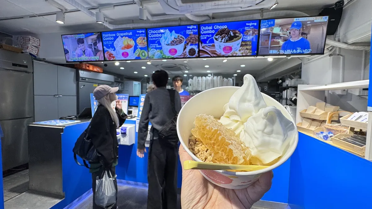 The most popular is the honeycomb yogurt, which is soaked with plenty of honey. It is said to be very popular in Korea as a "beauty sweet.