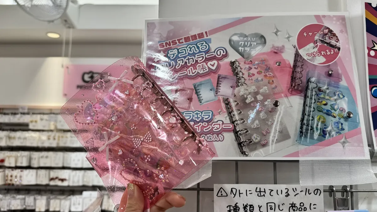 When you enter the store, you see a clear-colored sticker book, popular on SNS, and a lame clear binder.