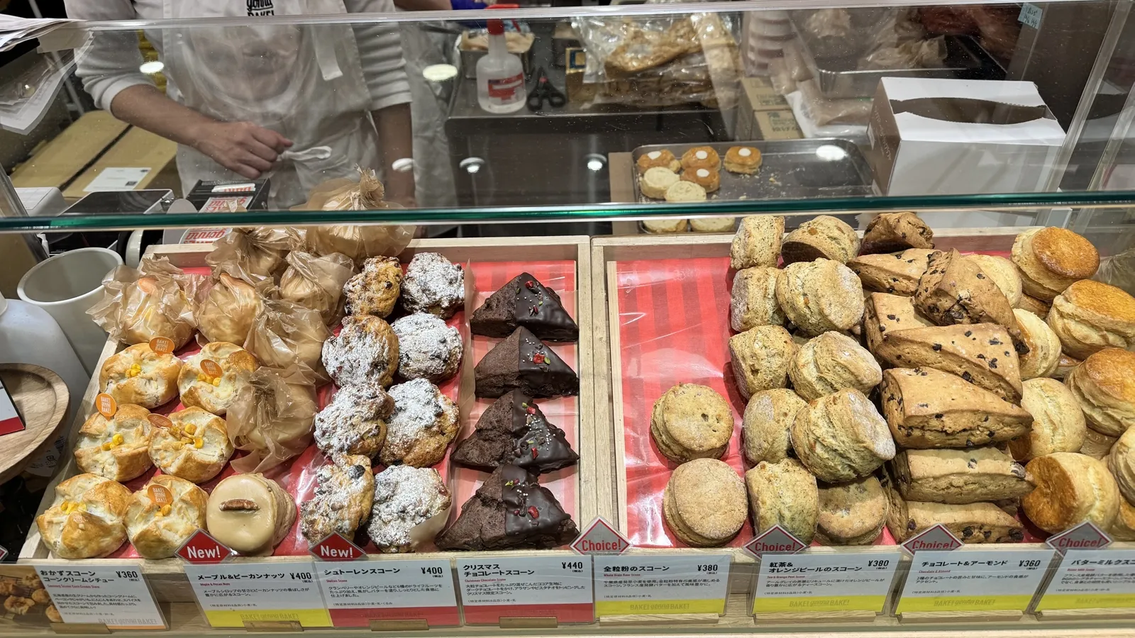 季節限定のシュトーレンスコーン、チョコスコーン、プレーンなど種類が豊富で、