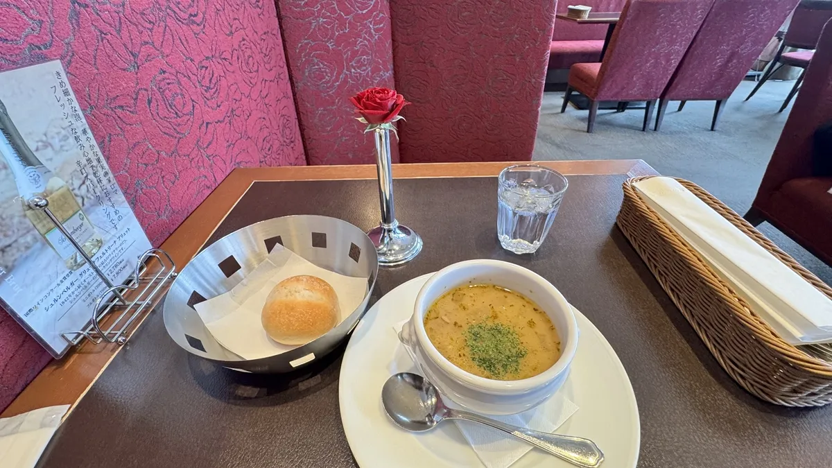 優しい味わいのスープで、ランチの期待が高まります。