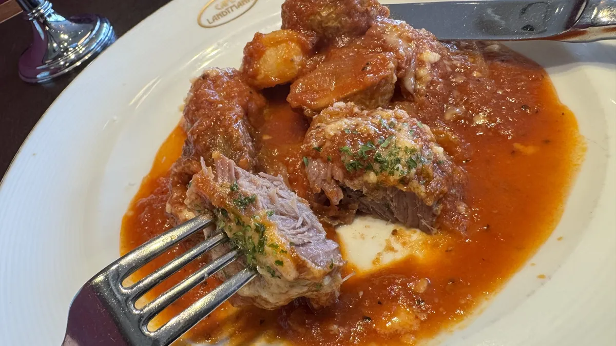 しっかり煮込まれた牛肉は、繊維がほどけるやわらかさ。