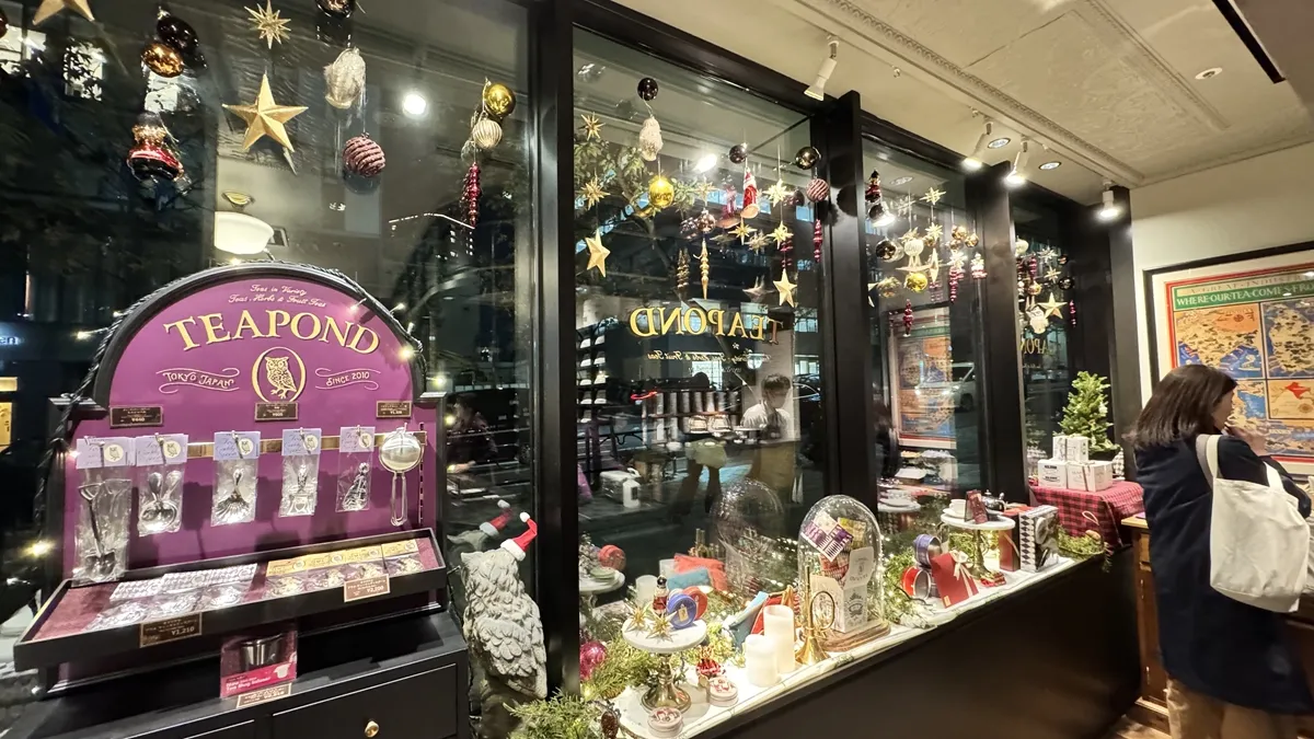 外苑前のTEAPONDは、冬の限定紅茶やクリスマスディスプレイが特に魅力的な紅茶専門店だ。ティーカレンダーとクリスマスコレクションはどちらも買う価値があり、ギフトにも喜ばれる商品ばかり。店内の世界観は完成度が高く、選ぶ時間そのものが楽しく感じられる。