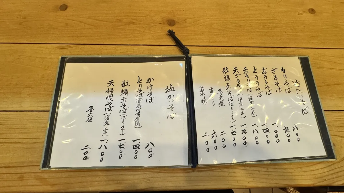 松永のメニューは、冷たいそばと温かいそばが中心。