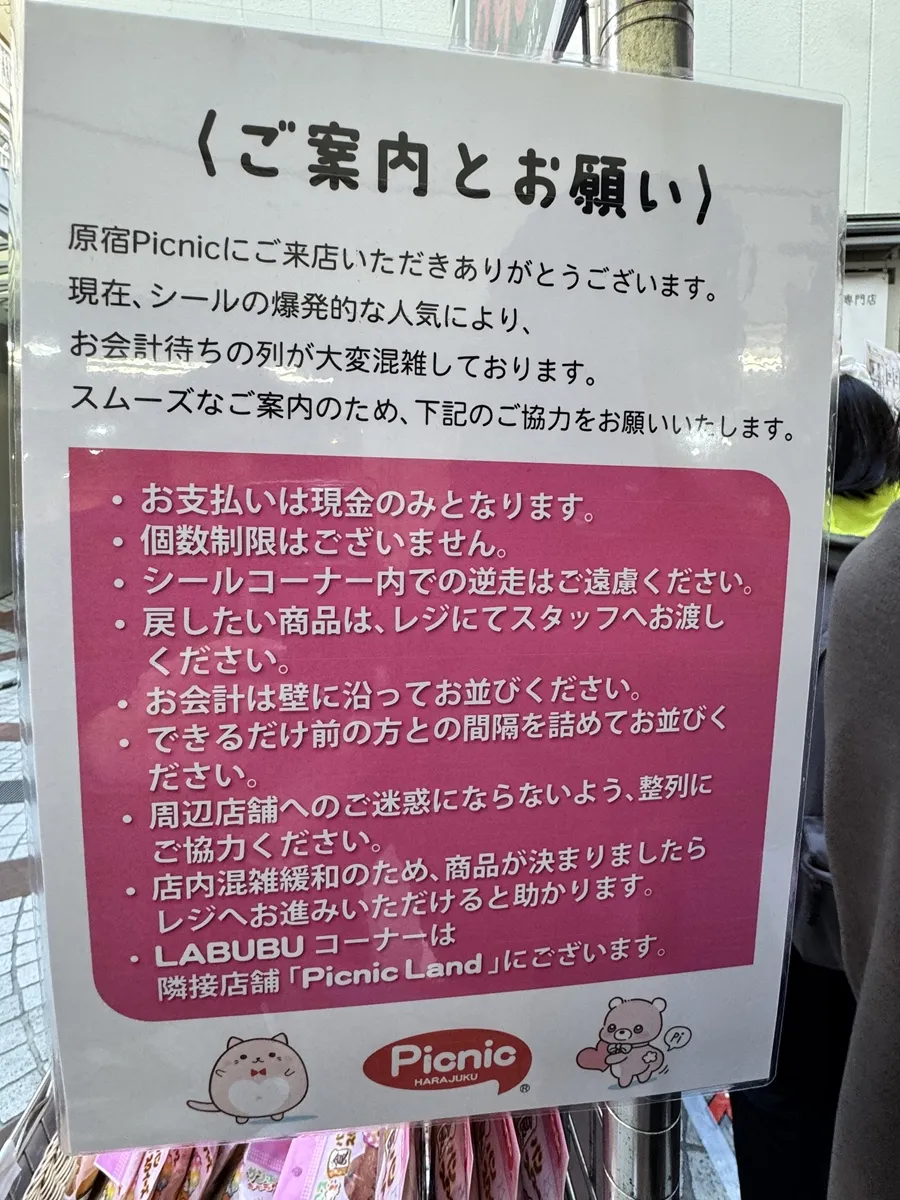原宿PICNICでは、シールの爆発的な人気により 会計待ち列が常に混雑 しています。