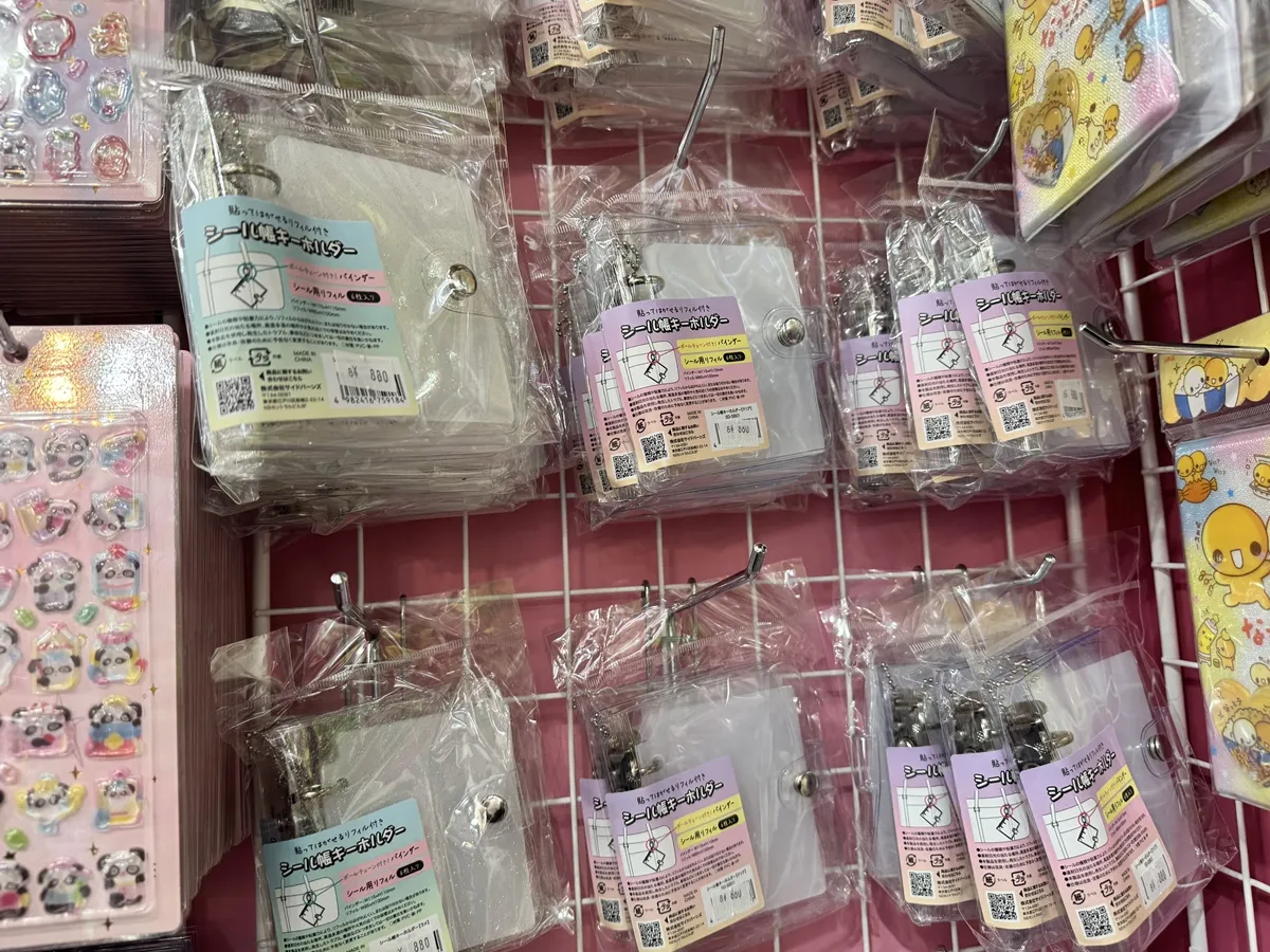 店内奥には、人気の 「シール保管キーホルダー(¥880)」 も並んでいました。