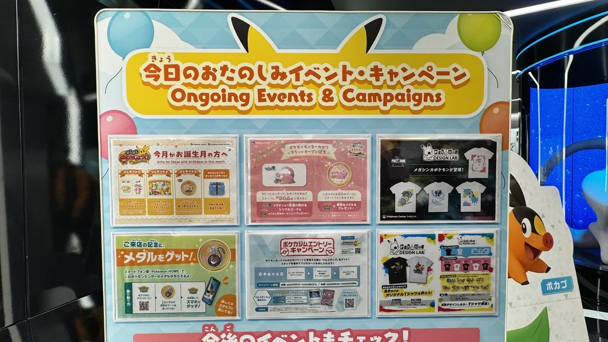すぐ横にはイベント掲示ボードもあり、誕生日プレゼント企画やキャンペーン情報をチェックできます。