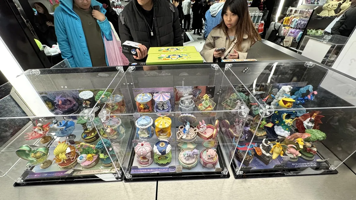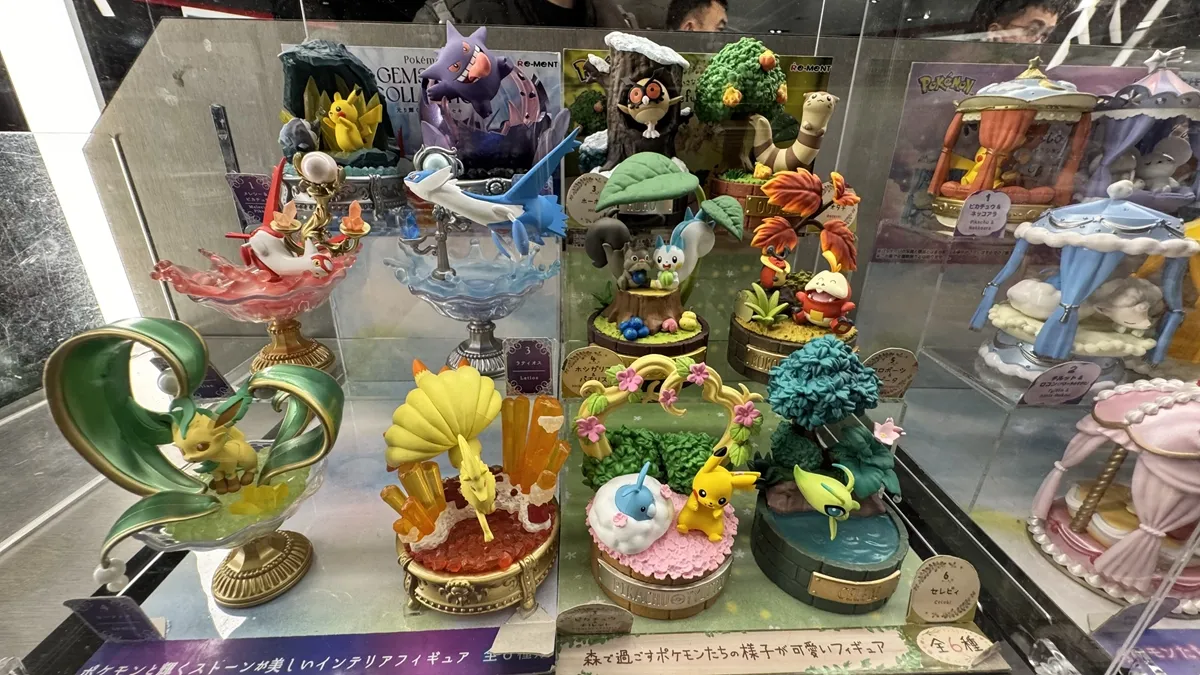 ショーケース内には、細部まで精巧に作られたポケモンフィギュアシリーズが展示。