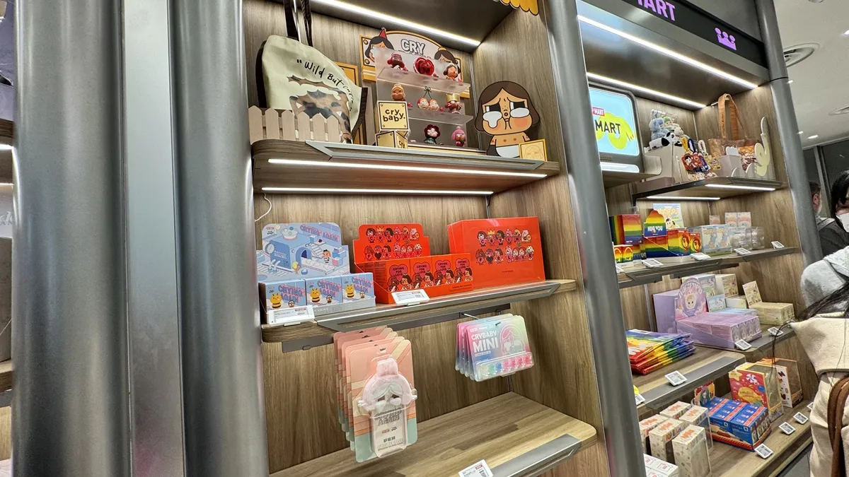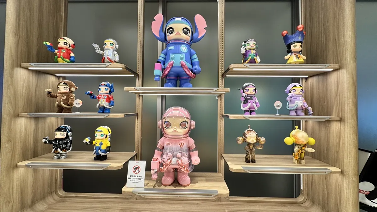 - 壁面にはMOLLYやDIMOOなど人気シリーズが整然と並び、