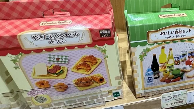 棚の一角には、「やきたてパンセット」「おいしい食材セット」「ソース&調味料セット」など、ミニチュア好きにはたまらない小物がずらり。
