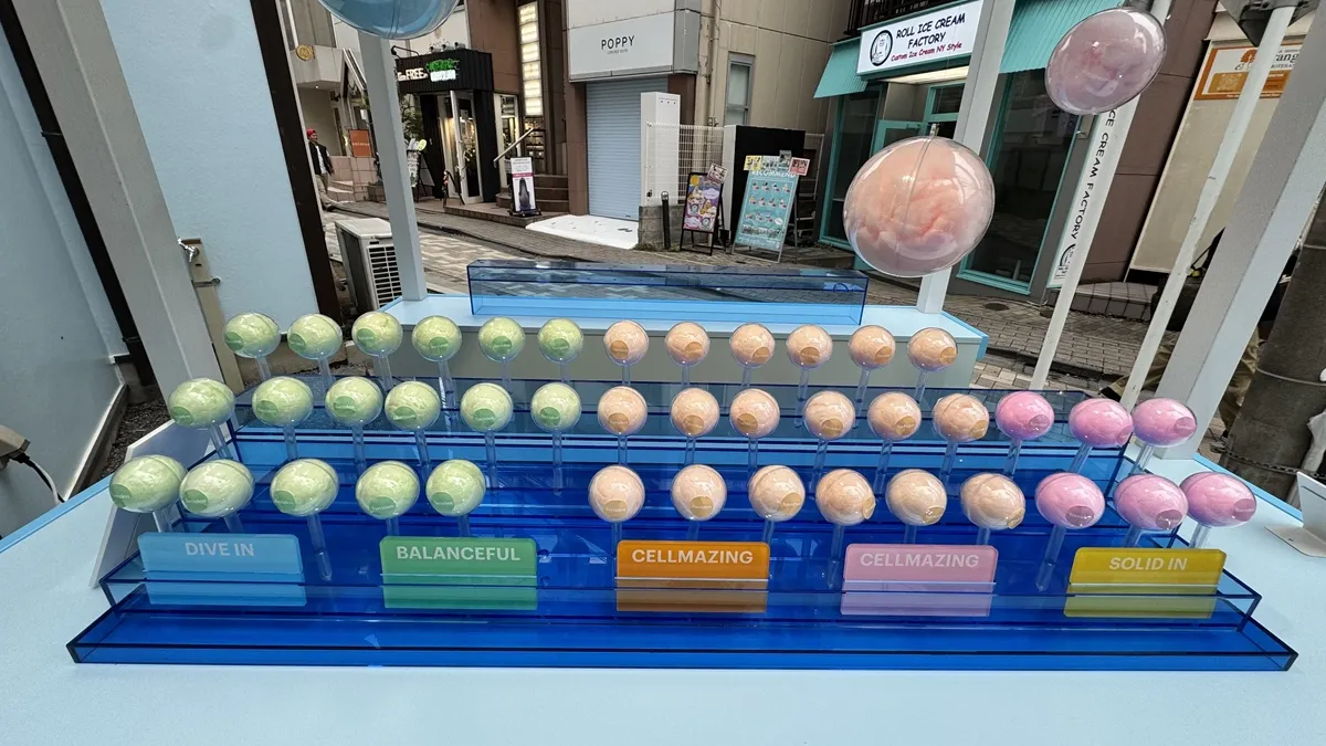 ふんわりとした見た目が可愛く、まるでコスメのように並んだパステルカラーの綿あめが印象的。