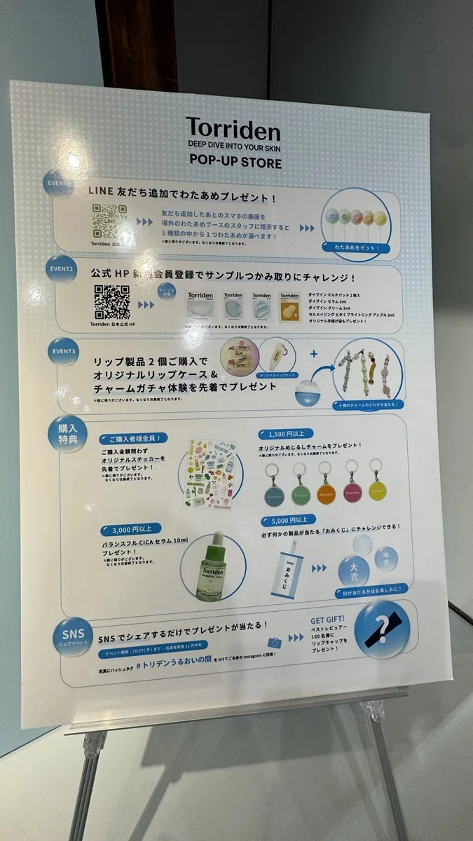 Torridenの『うるおいの間』は、単なるコスメ販売イベントではなく、ブランドの哲学を五感で体感できる空間でした。展示・香り・照明・体験コンテンツ、すべてが“うるおい”のテーマで統一されており、一歩足を踏み入れた瞬間から癒されるような感覚。