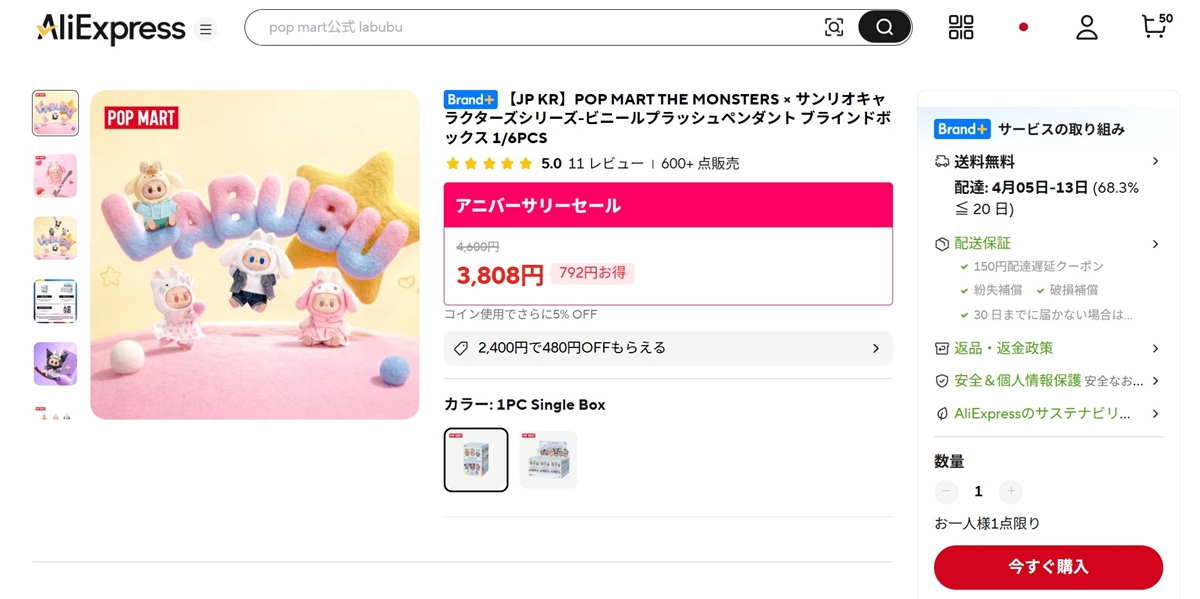 - 日本発送の制限: アリエク内のPOPMART公式ストアでは、日本への発送に対応していない商品があります。その場合は、評価の高いセレクトショップ(非公式)での在庫チェックが有効です。